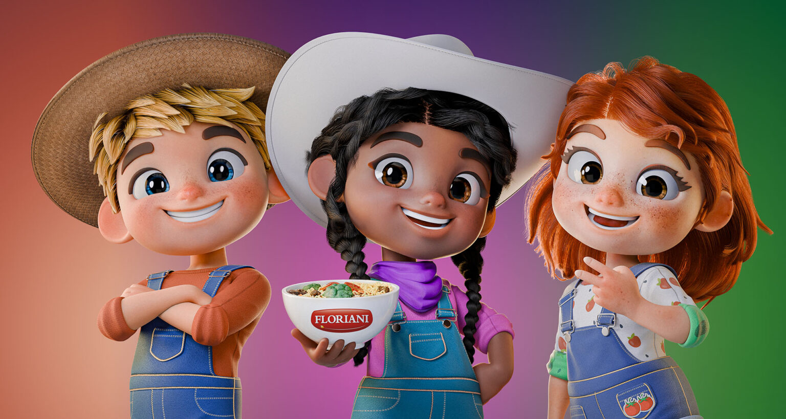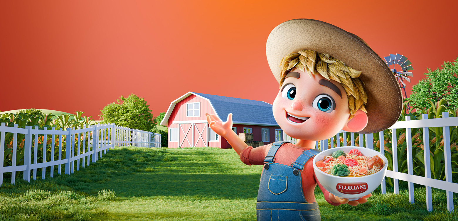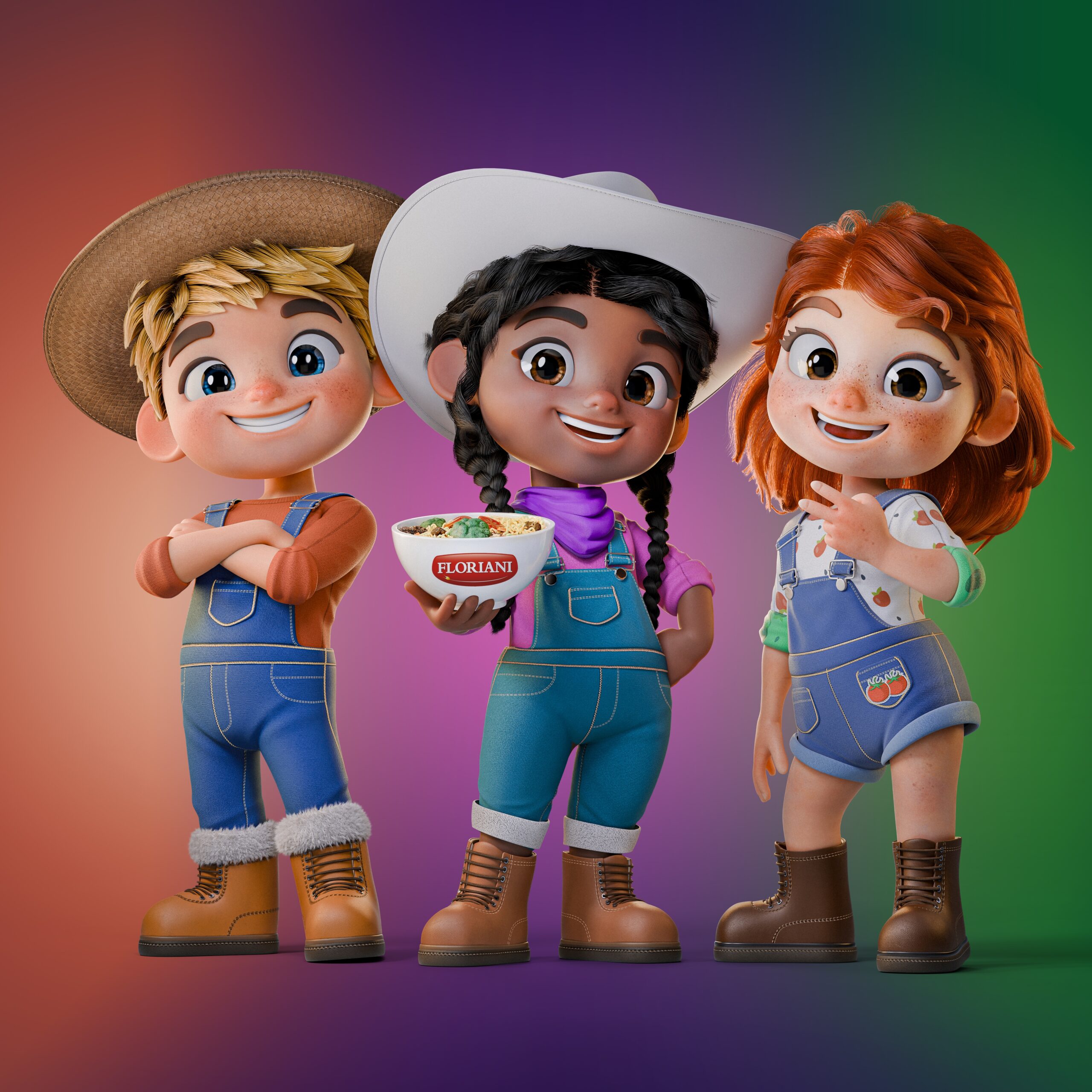 Criação dos novos mascotes da Floriani para utilização em embalagens e uso na comunicação da nova identidade do macarrão instantâneo.